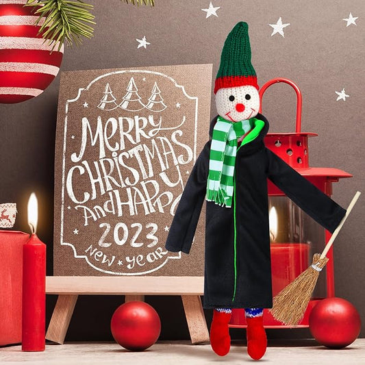 North Pole Sorcerer Outfit Set: Magical Robe, Scarf & Flying Broom for Your Elf!