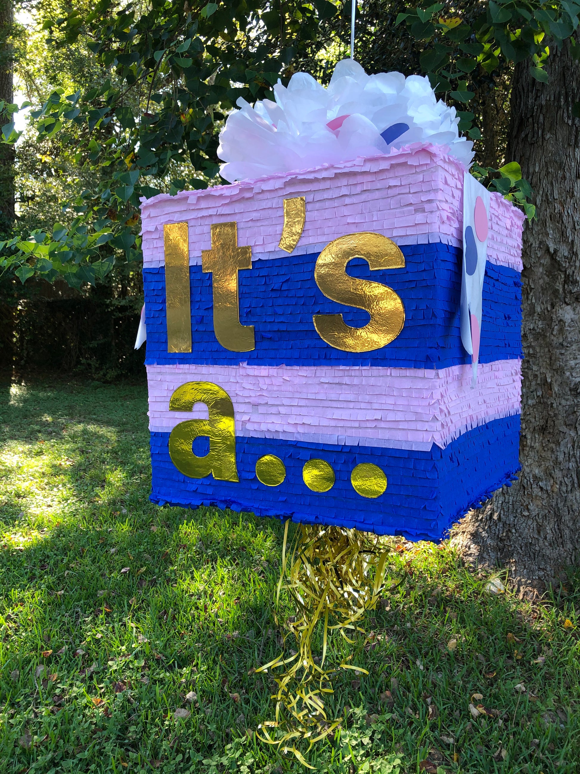Handcrafted Traditional 3D Piñata Details: Materials Include: Recycled cardboard, hot glue, crepe paper, cardstock paper, string, small balloons, confetti, streamers gold ribbon, tissue paper and tape. No candy is included. Colors may vary due to differences in monitor and crepe paper.
